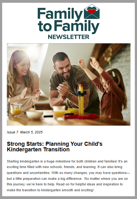 Subscribe to our new Family to Family Newsletter. This bi-monthly newsletter for parents and caregivers of children includes resources for families to support their student’s success and connect with their child’s school and community from preschool through high school graduation.