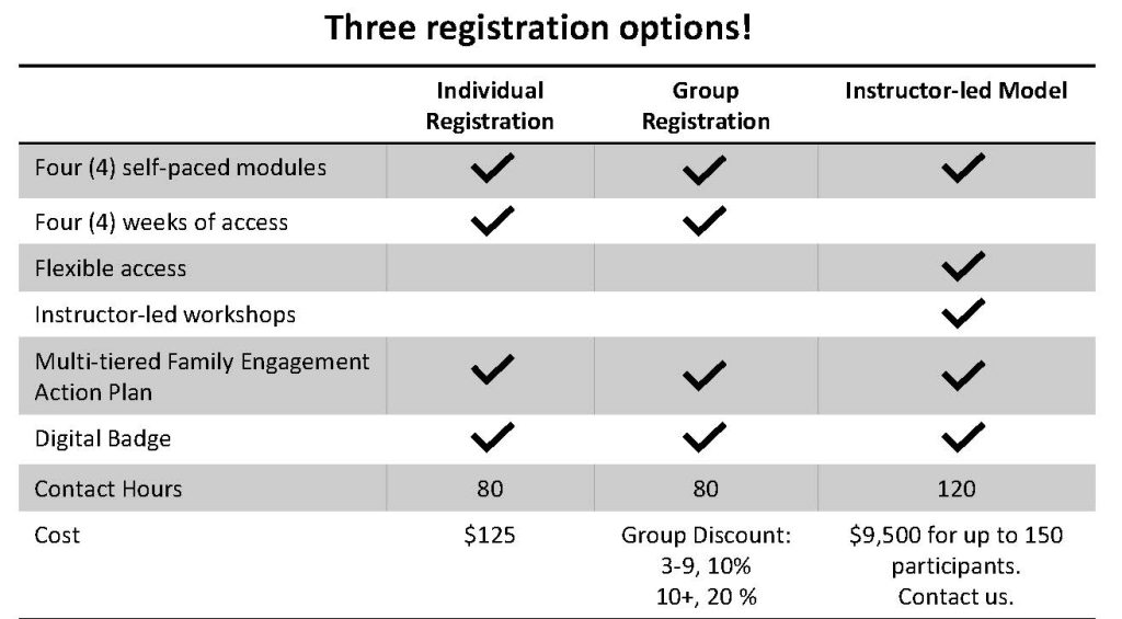 Outcome: The outcome of this seminar is to create a multi-tiered plan for family engagement to support student learning and development in your out-of-school time program.